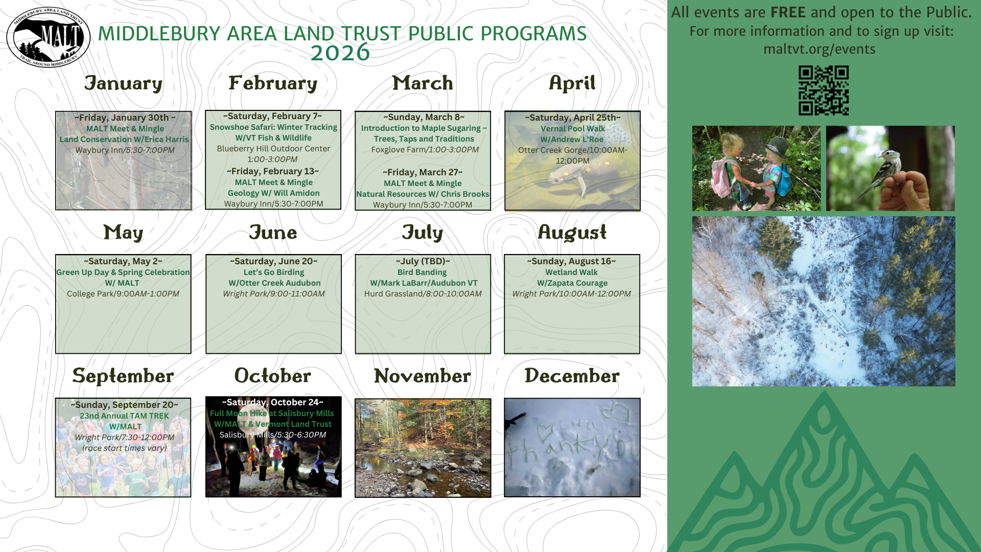 MALT offers year-round, nature-based, afterschool programs for grades K-5. We serve students from all schools, with programs running in Middlebury and Cornwall.